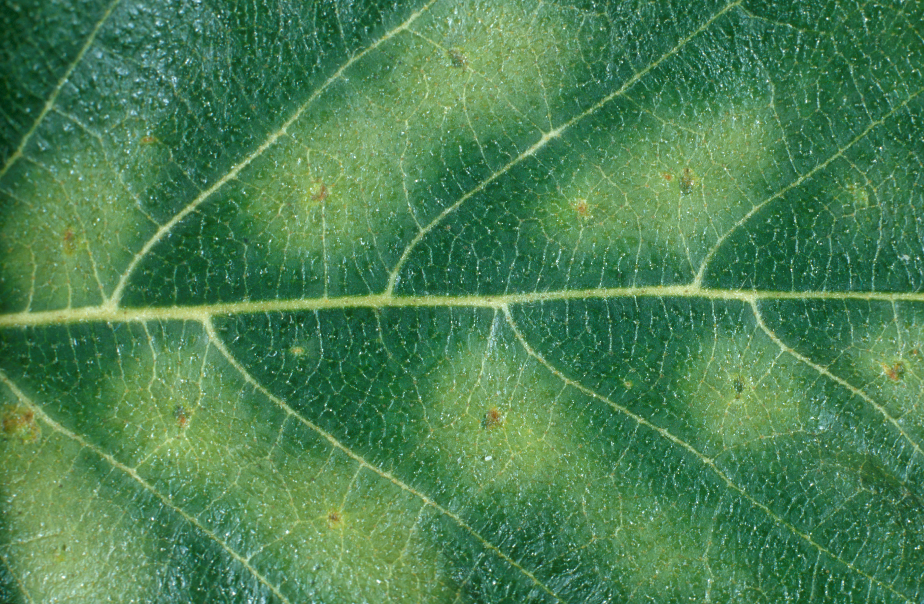 Gros plan d'une section de feuille de bouleau contenant des œufs